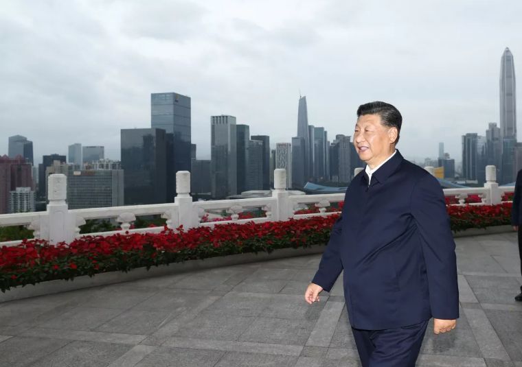 ↑10月14日,深圳经济特区建立40周年庆祝大会在广东省深圳市隆重举行。中共中央总书记、国家主席、中央军委主席习近平在会上发表重要讲话。这是当天下午,习近平在莲花山公园远眺特区新貌。新华社记者 鞠鹏 摄