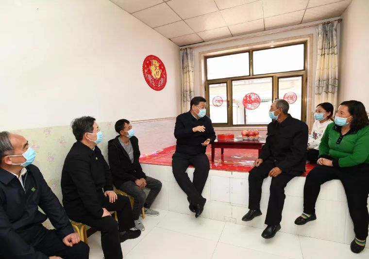 ↑5月11日至12日,中共中央总书记、国家主席、中央军委主席习近平在山西考察。这是5月11日下午,习近平在大同市云州区西坪镇坊城新村,同搬迁户白高山一家人坐在炕沿儿上拉家常。新华社记者 谢环驰 摄