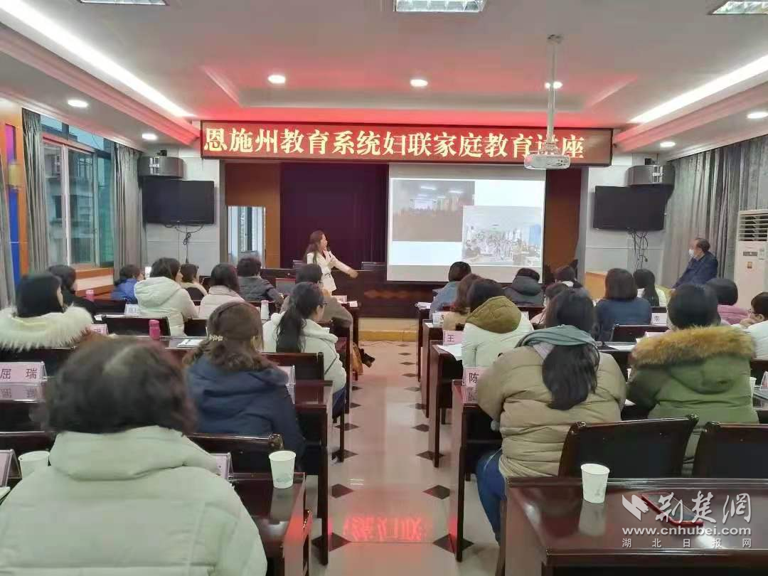 恩施州教育系统妇联成立当天,便开展了第一场服务活动——“家庭教育知识讲座”,有效提升了教育系统女性干部职工家庭教育指导能力,进一步促进家校联合,助力恩施州“家庭教育”工作。
