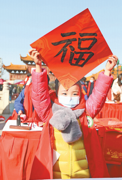 1日,黄鹤楼公园内百名书法爱好者和书法家书写迎新春。
