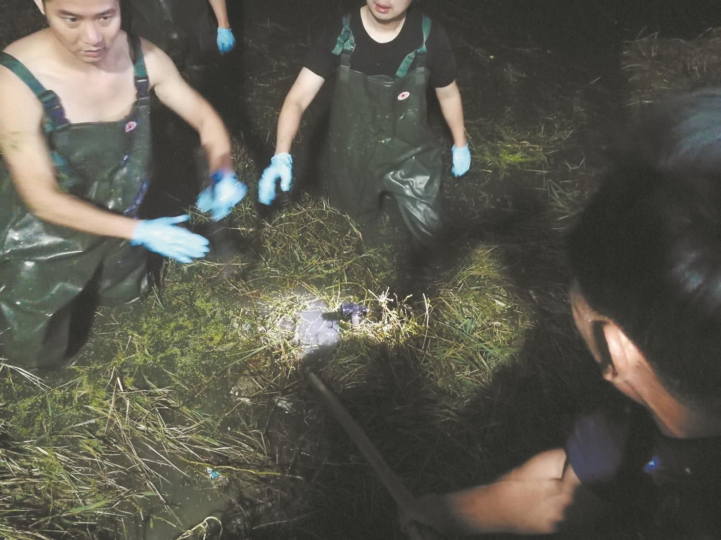 民警下到水塘找到作案用的铁锤