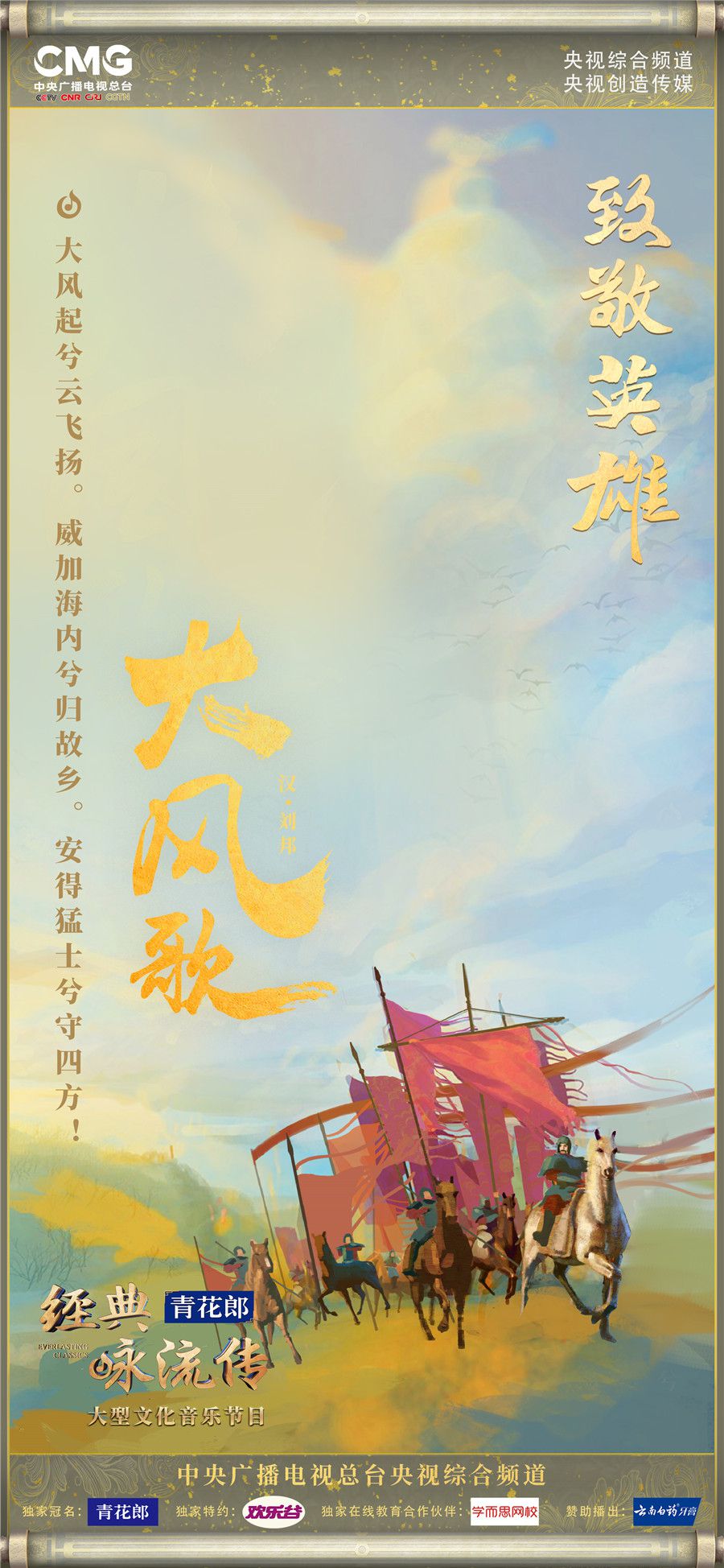 《经典咏流传》作为中央广播电视总台打造的大型文化音乐节目,三季以来始终紧紧围绕经典诗词的旋律新编、歌曲演绎进行融合传播,传递向上、向善的主流价值,也成为唯一囊括星光、白玉兰、亚广联三项大奖的电视综艺节目。全新升级的第四季节目将“诗词”和“英雄”结合,让浪漫主义情怀和现实主义视角相遇,正在迸发出动人心魄的文艺之美。