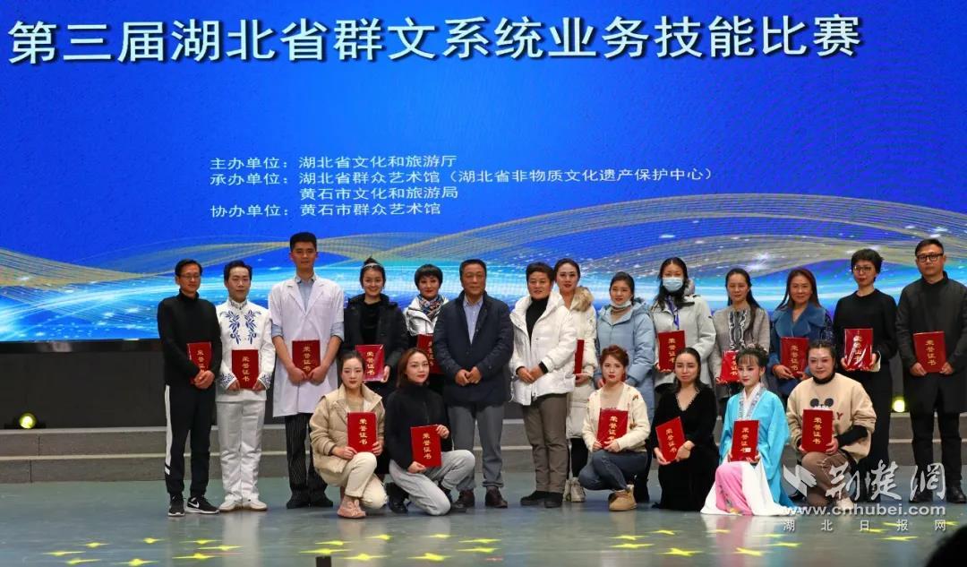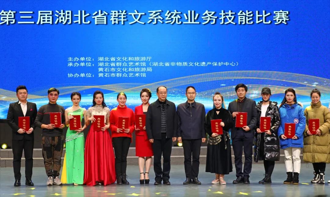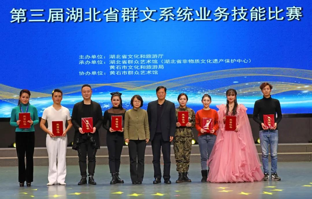 (通讯员 何丽娟 摄影 游敏 丁一)12月29日晚,湖北省第三届群文系统业务技能大赛在黄石市圆满落幕,来自全省17个市州群文系统的106名参赛选手参加了比赛。大赛由湖北省文化和旅游厅主办、湖北省群众艺术馆和黄石市文化和旅游局联合承办,黄石市群众艺术馆协办。湖北省文化和旅游厅副厅长陶宏家,黄石市人民政府副市长李丽,湖北省文化和旅游厅公共服务处处长许扶亚,湖北省群众艺术馆党委书记、馆长王军等领导观摩决赛并为获奖选手颁奖。