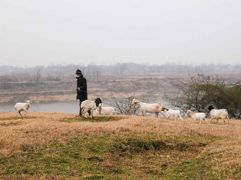 在冬日的寒风中,毛传文正忙着将羊群从河边唤到一片青草地。听到毛传文的招呼着,羊群“咩咩咩”地向他靠近。“只要现在我还能干,就坚决自己干,不给国家增加负担!”脱贫户毛传文说。