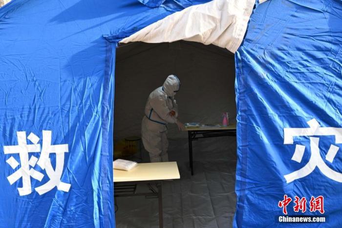 资料图:河北石家庄长九花园小区,医务人员正在进行采样准备。中新社记者 翟羽佳 摄