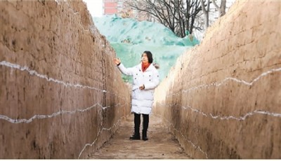 在考古现场,北京市文物研究所研究馆员、金中都遗址考古发掘项目负责人丁利娜介绍如何通过剖面地层来认识金中都城墙的建造方式和墙体的夯层结构。从解剖沟上可以看到城墙夯层,顺着夯层继续往东延伸,可以很清楚地看到不同的夯土层,说明这是城墙的倒塌土。由此确定了城墙东边界的位置。