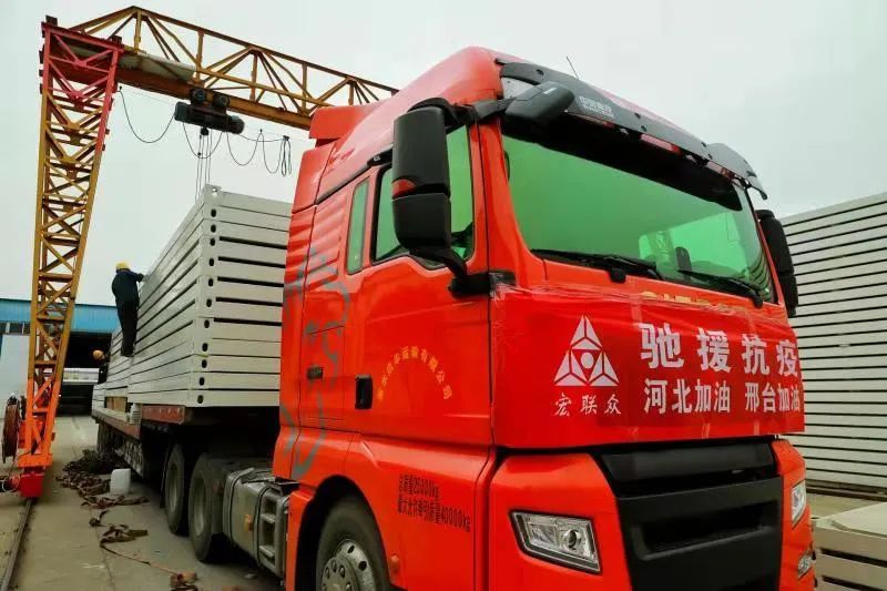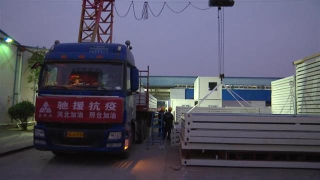 “15号接到河北省政府通知,要求我们承接邢台隔离医院建设任务。当天晚上我们连夜组织工人装车。从昨天晚上到现在累计装货18车,累计350套。”公司总经理孙坤远介绍。