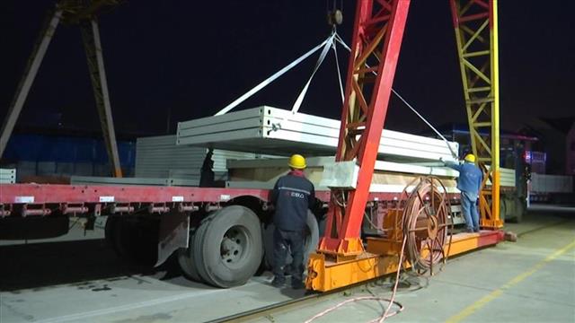 (记者 闵丽萍 王翠玲 通讯员 邹燕娥)1月16日晚上7时许,湖北宏联众装配集成房屋有限公司生产厂房内灯火通明,工人们有条不紊地忙碌着,随着最后一车吊装完毕,第一批8车集装箱式房屋紧急发往河北邢台市。