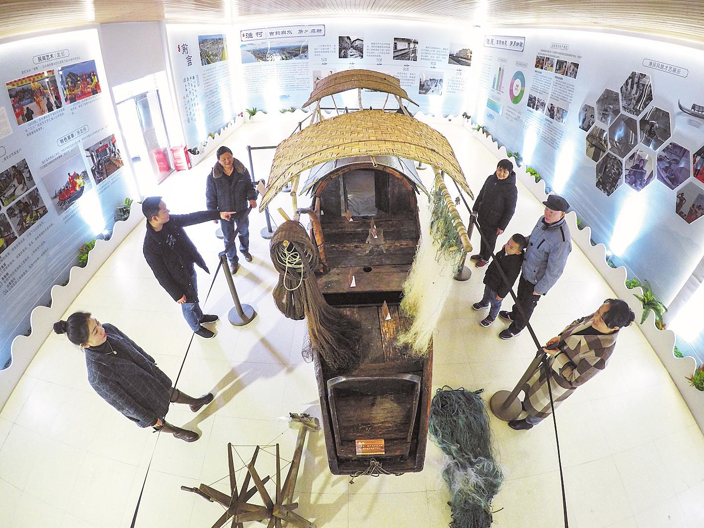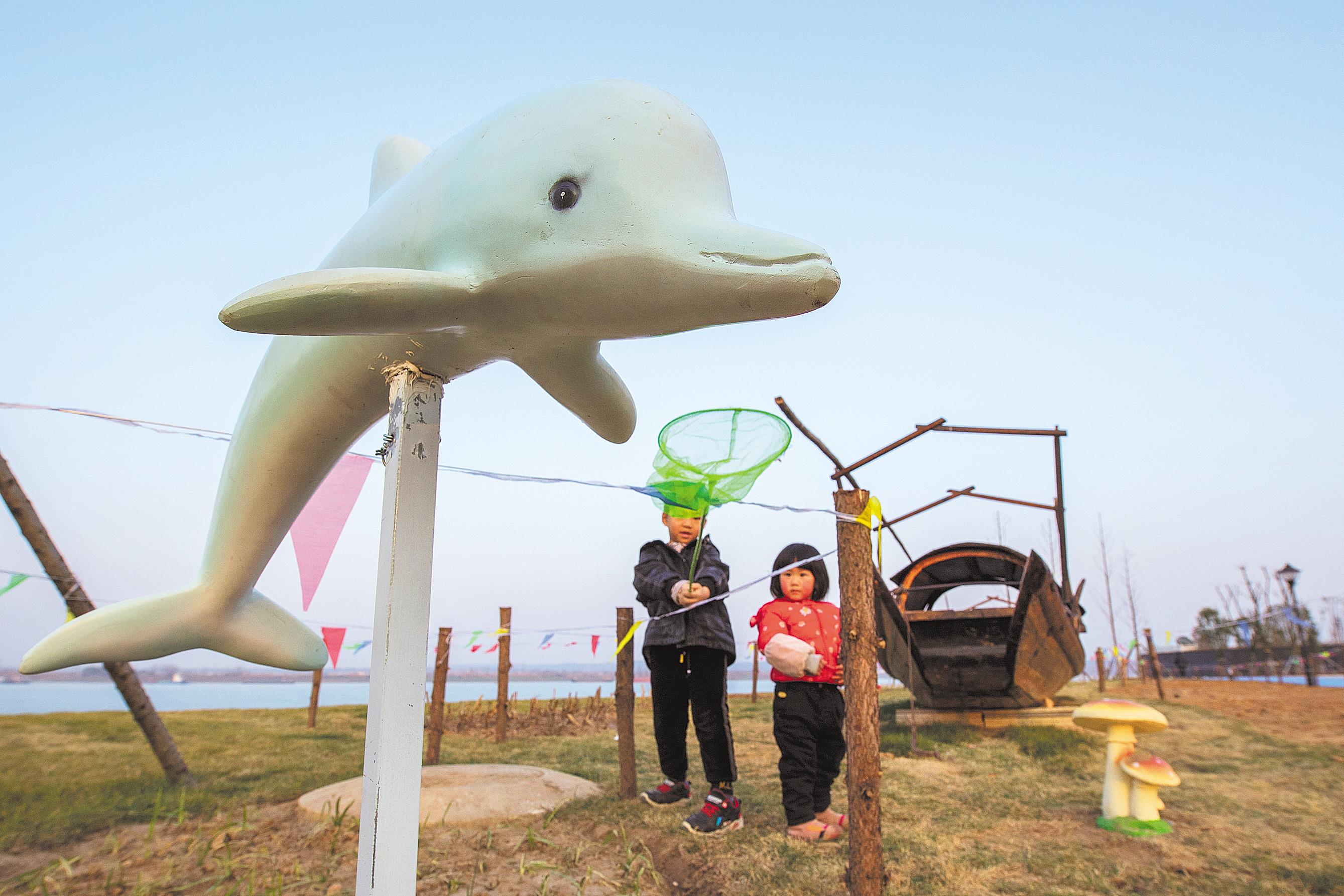 渔民上岸了,但根不能丢。白水港村委会后院是新建成的“渔民驿站”和陈列室。渔民捐献的渔船渔具、捕捞工具等物件,展现了渔民过去的生活和退捕上岸的历程,让渔民的乡愁有了寄托。在枝城镇江滩朝阳广场,有2艘渔船当作景观摆在岸边,3只白 豚雕塑环绕在渔船周围,似乎还在诉说这个百年小渔村的沧海桑田。“我不久前在江面上看到一群江豚,以后一定能经常看到它们。”白水港村退捕渔民刘成奎信心满满地说。