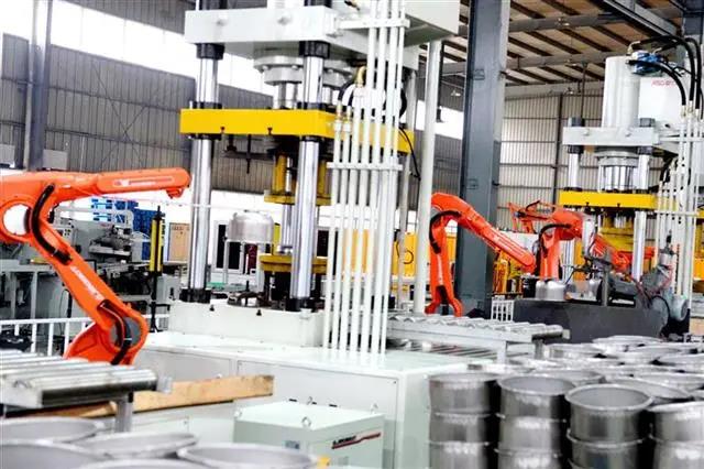 疫情管控下,人员返岗受限,爱仕达智能“小红人”显身手!2017年,企业投入1.2亿元启动智能制造系统建设,安装200余台红色机器人手臂应用在炊具制造、冲压、打磨、码垛等各个生产环节。液压机旁,两台机器人手臂配合精准,取片、推送、放片、冲压,每5秒钟就制造出一口锅。目前,爱仕达机器人代工率已达70%。