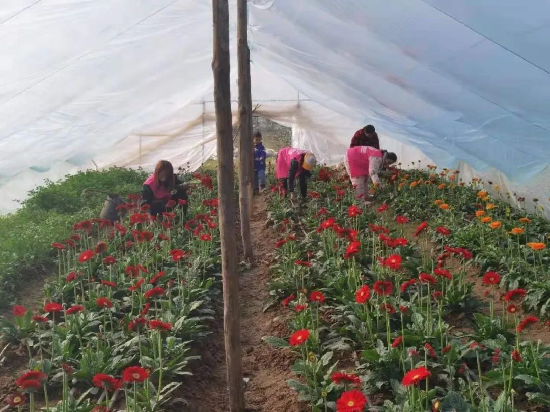 “平常除草、打叶我都请乡亲们来干活,以贫困户家庭的劳力为主,按天付费。高峰期一个月要请工15天,最少也要请工一周。”汪丽说,年前气温能回升,大棚里的花就可以大批量上市了。