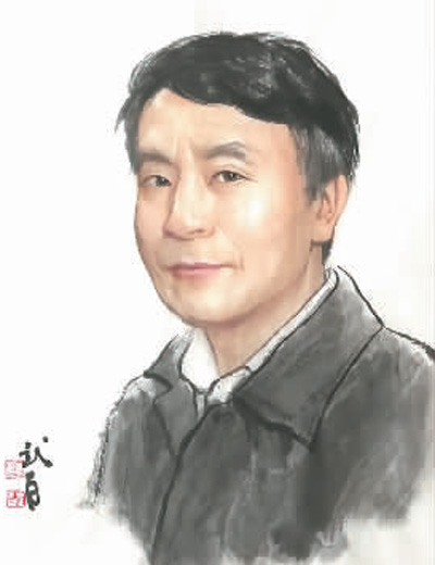 作者刘建国肖像画。本版画家 张武昌绘