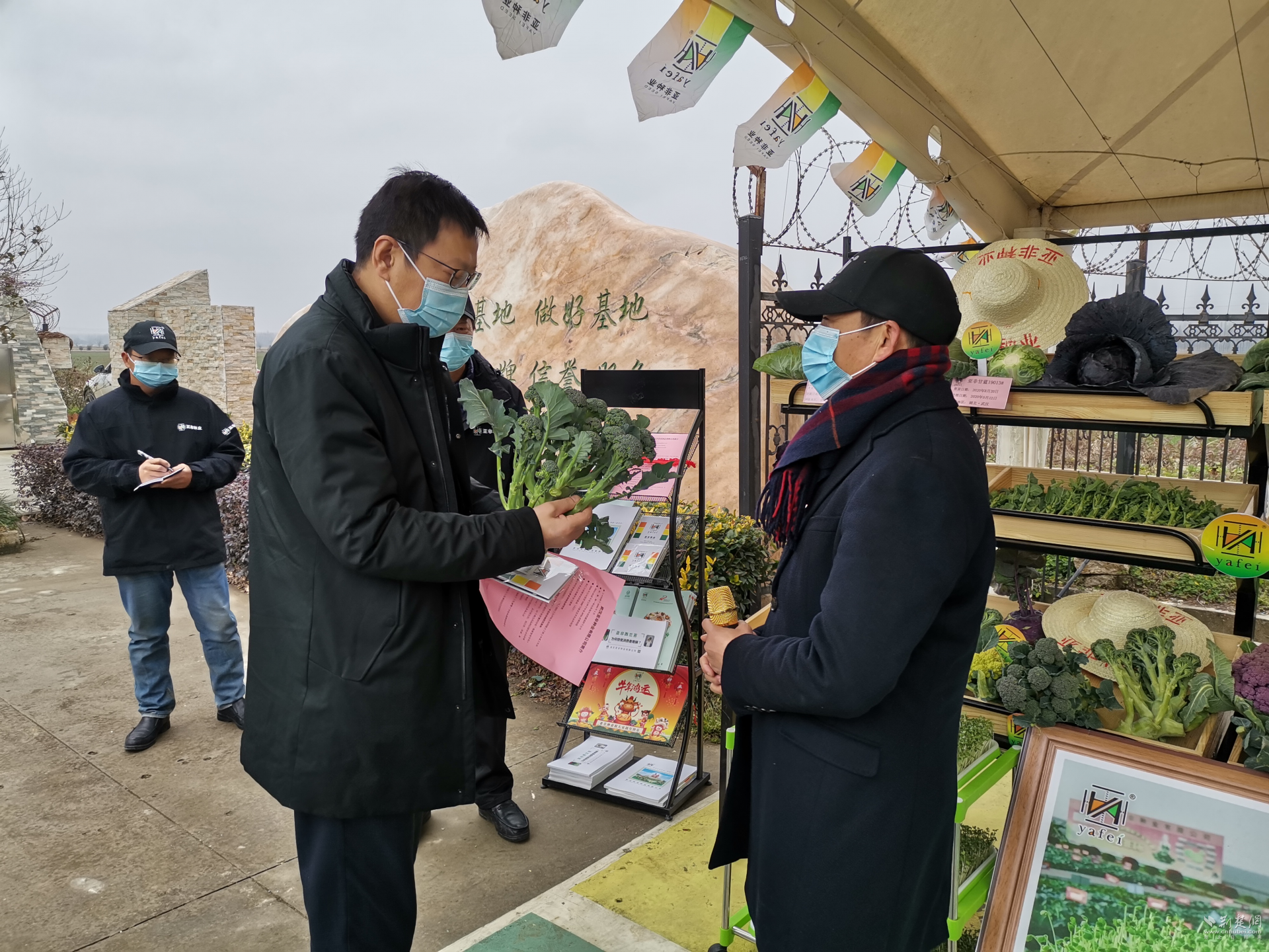 在亚非种业蔬菜展柜旁,杨军听取了亚非种业总经理贺亚菲的介绍,还品尝了亚非种业脆甜的西兰苔、香嫩的皱叶菜品和原滋原味的皱叶菜汁,杨军对几款菜品的味道点头称好,认为皱叶菜汁“有点意思!”。