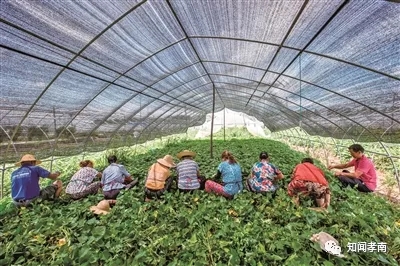 8名乡亲和李安学、田爱荣一起采摘苕尖。