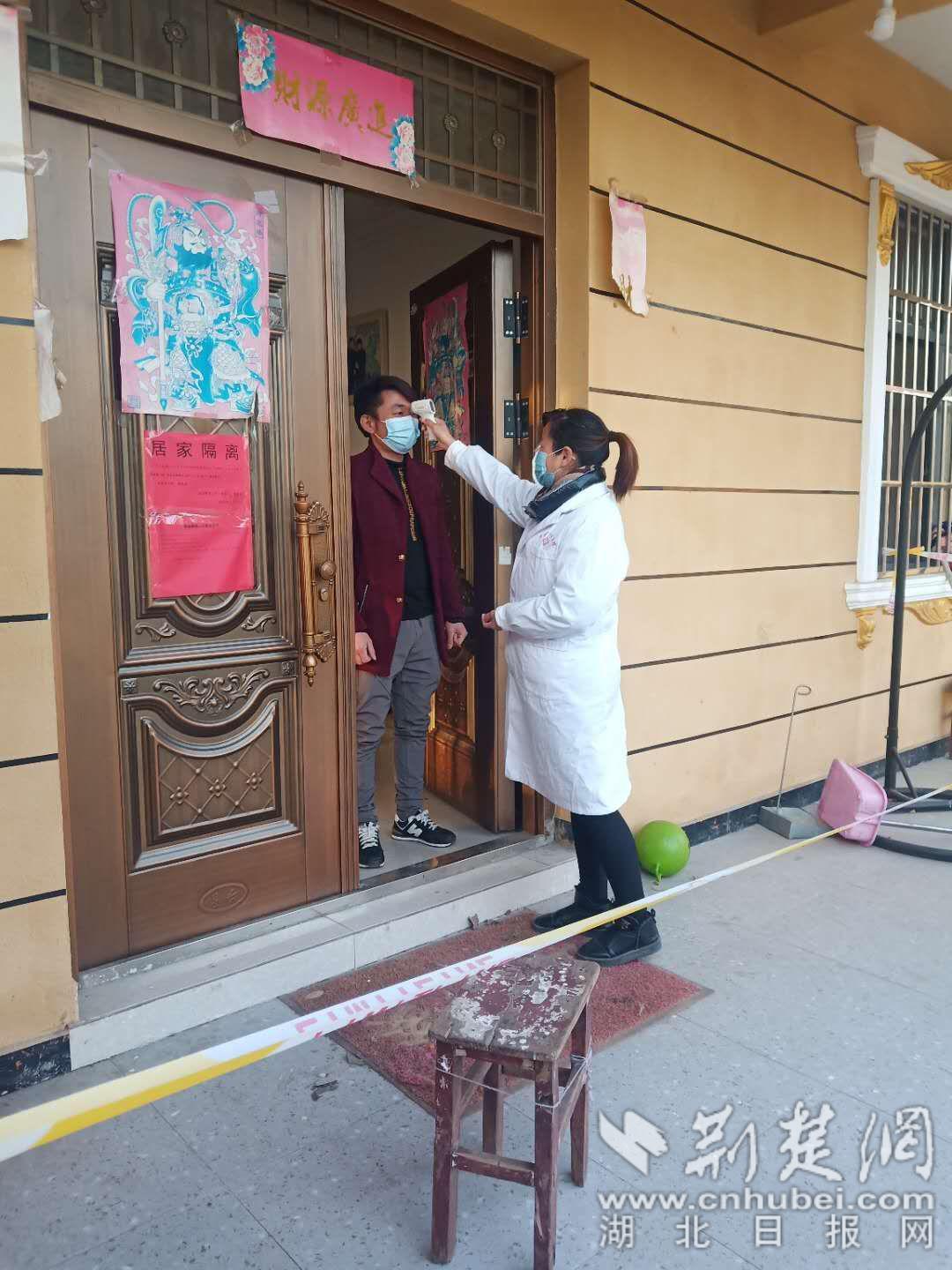 对居家隔离人员进行测温。通讯员供图