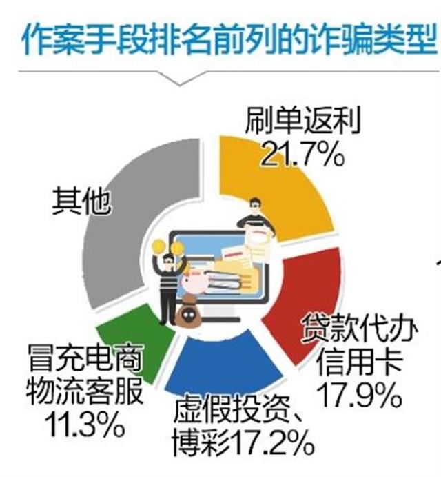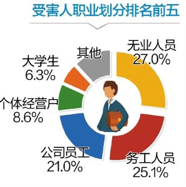 公司员工主要受虚假投资、博彩诈骗(占19.4%)、刷单诈骗(占18.1%);