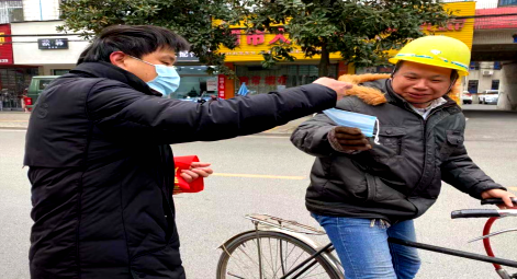 “师傅,请戴好口罩!”1月16日,周六,应城市委编办下沉党员张顼、丁鹏、阮祖洪一行到应城宾馆附近劝戴口罩,讲解防疫知识。