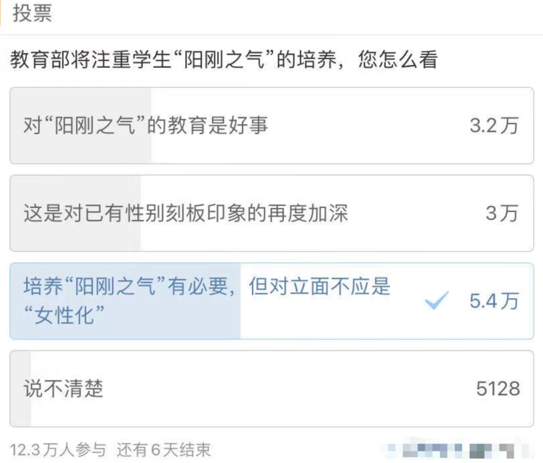 有媒体就此发起了投票,12.3万人中,近半网友认为“阳刚之气不应和女性化对立”。