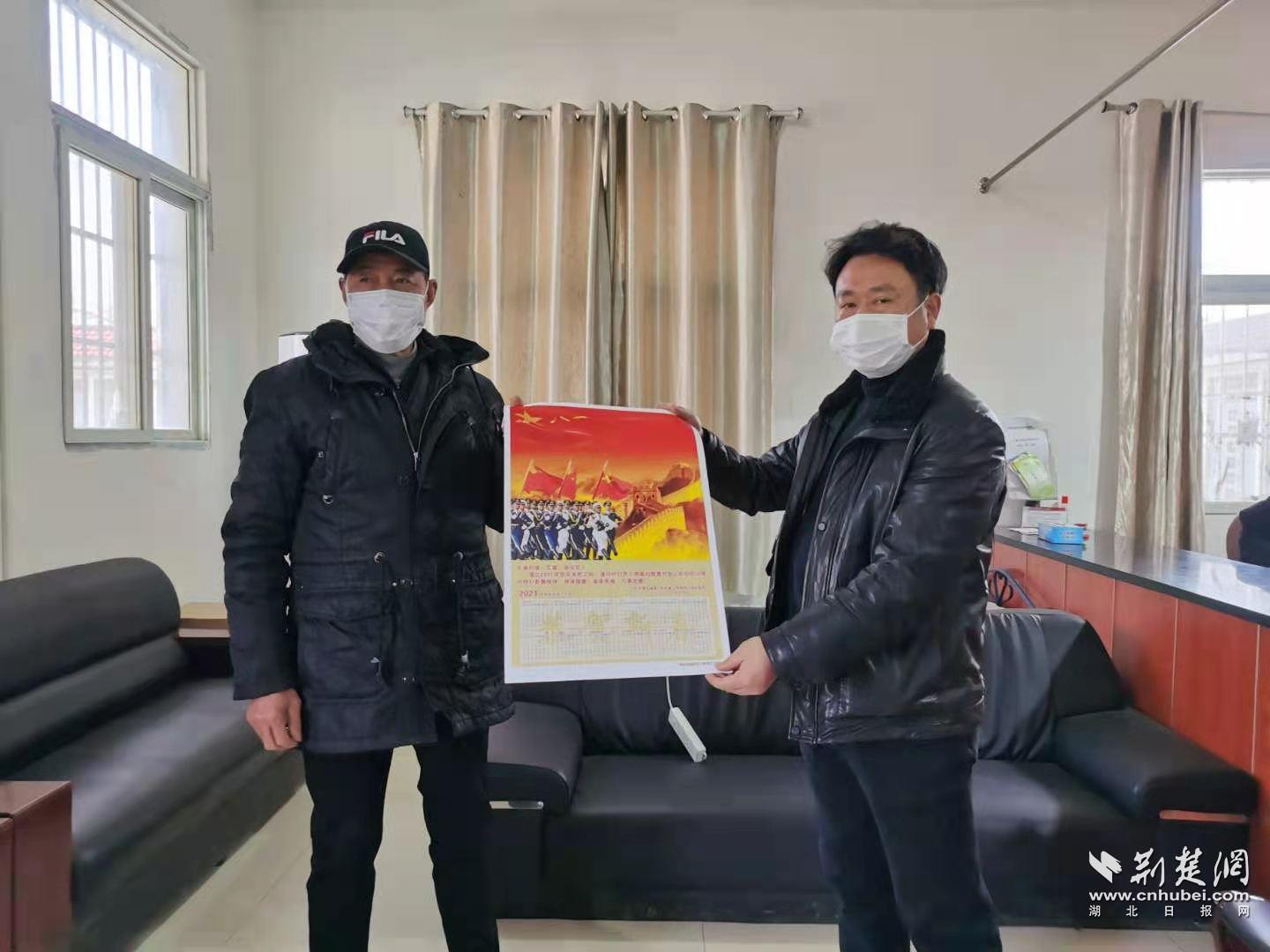 为现役军人家属发放年画。通讯员供图
