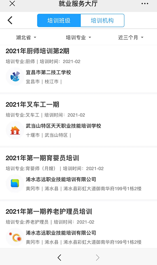 劳动者可实时查询全省定点培训机构的培训班期计划并在线报名。