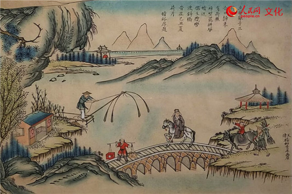 天津杨柳青年画《渔樵耕读》。人民网 孟丽媛 摄