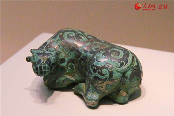 战国错银铜卧牛。人民网 孟丽媛 摄