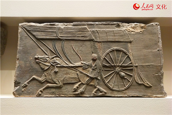 南朝牛车画像砖。人民网 孟丽媛 摄