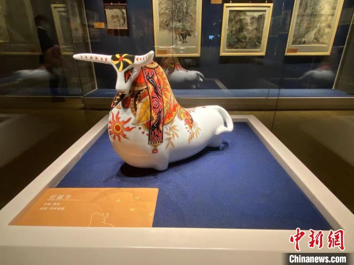中新网海口2月7日电 (记者 王子谦)值辛丑(2021)牛年到来之际,海南省博物馆于2月7日推出“牛牛食草莫相触——牛年牛艺术展”,特邀艺术家以牛为主题进行艺术创作,为观众呈现牛年文化。