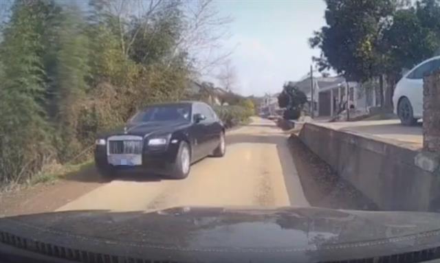 极目新闻2月17日讯(记者孙泽宇)近日,在湖北松滋的一条乡间小路上,一车主在与对向一辆劳斯莱斯轿车会车时,因道路较窄及时停车避让,谨慎会车,成功避免了与这辆价值400多万的豪车相撞,网友对此调侃,“挽救了一套房”。