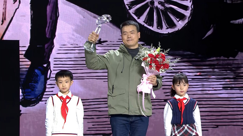 △汪勇接受感动中国奖杯