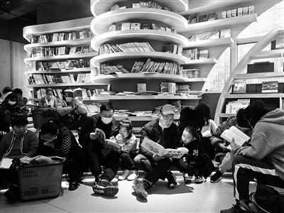 2月17日下午,北青报记者在王府井书店感受到火爆的客流人气。在1楼大厅,六七位读者戴着口罩,挤在一起围观柜台里新中国成立以来各个时期的人民币;在3楼少儿阅读体验区,家长们带着孩子三三两两地围坐在一起读绘本。