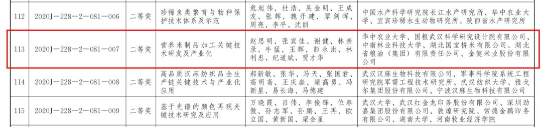 湖北省粮油集团党委副书记、副总经理兼湖北省现代农业有限公司董事长纪道斌参与研究的“营养米制品加工关键技术研发及产业化”项目,获2020年度湖北省科技进步二等奖。