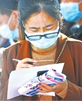 “我希望找一份工厂的工作,时间固定,不用倒班,离家近一点,可以兼顾小孩。”她直言,二宝托亲戚照料一上午,但大儿子还在放寒假,只好带出来陪她找工作。之前她曾有工厂的从业经历,所以主要还是咨询这一类岗位。“很多工厂马上就要到生产旺季,开的工资比较高。我已经填了几个企业的表格,再从里面挑一个最合适的。”