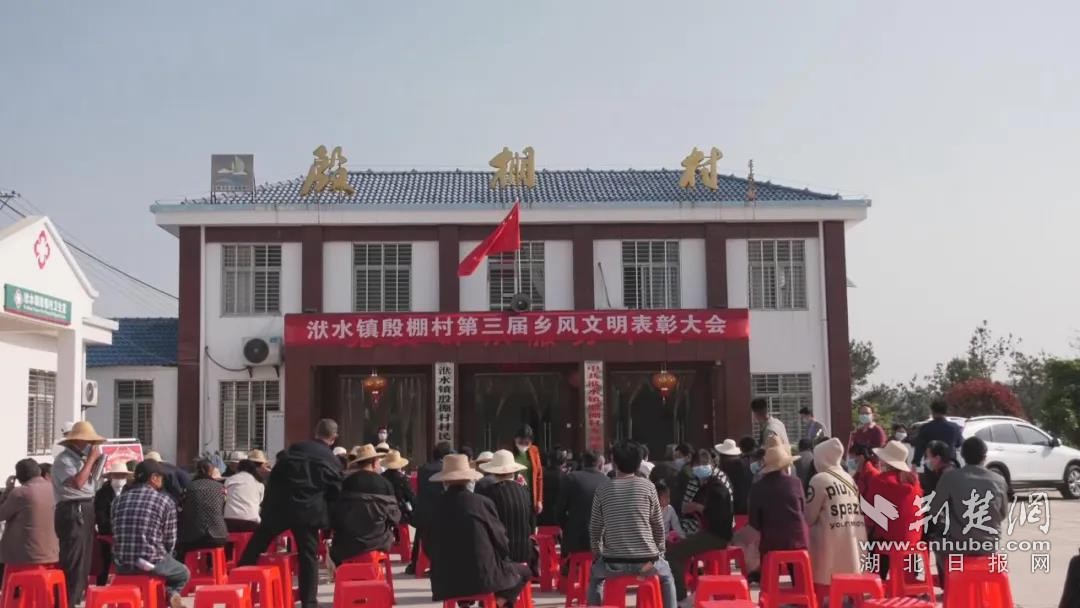 安陆市洑水镇殷棚村召开第三届乡风文明表彰大会。(通讯员供图)