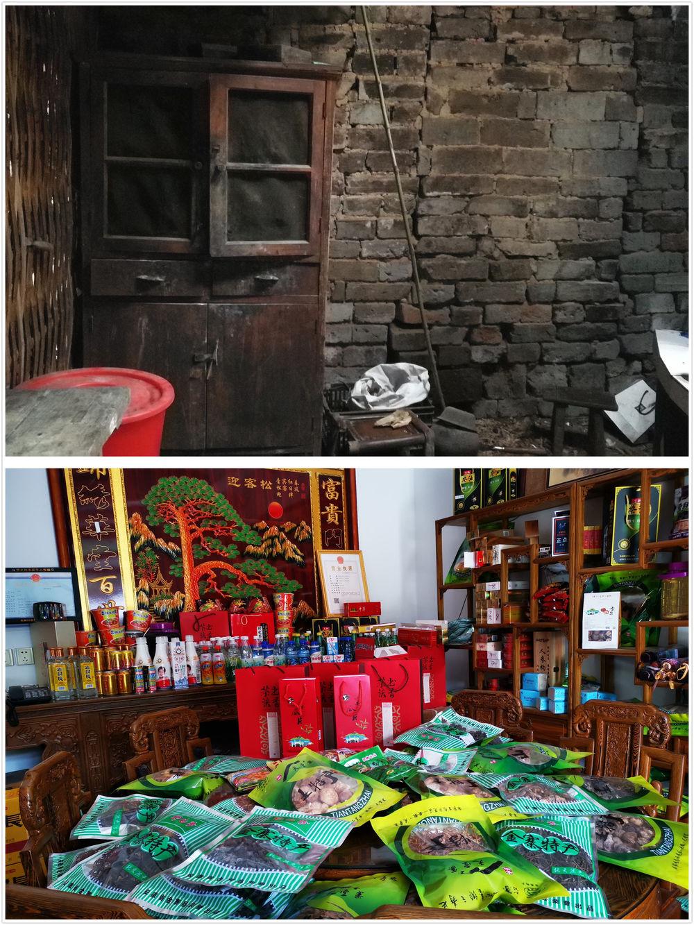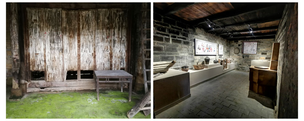 拼版照片:左图为2017年8月1日,记者拍摄的老宅内景。右图为2019年10月31日,老宅换了模样。(新华社记者陈诺 摄)