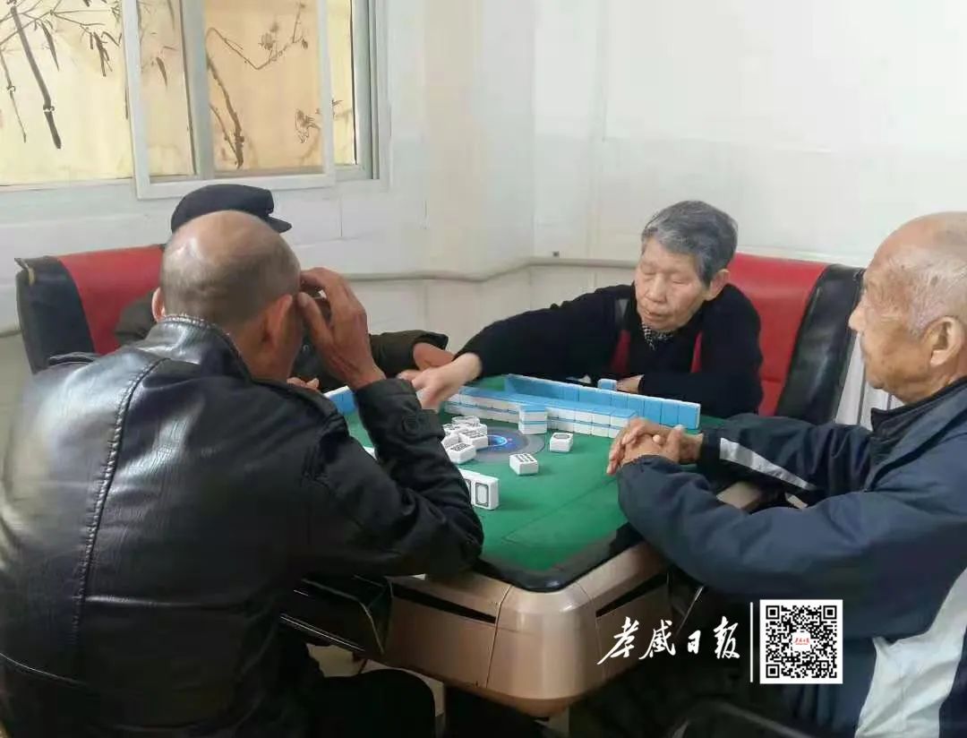 公寓活动室内,三位老人悠闲地打着麻将。娱乐活动厅,20多位老人正聚在一起聊天、看电视。88岁的王菊兰来自黄陂,一儿一女在安陆工作。她有点耳背,行动不太方便。66岁的祝广朝是赵棚人,两年前因车祸左腿残疾,只能坐在轮椅上。92岁的夏玉太是老年公寓最年长者,他来自安陆市洑水镇汤家湾,耳聪目明,生活尚能自理。两年前老伴去世后,他住进了李店福星老年公寓。