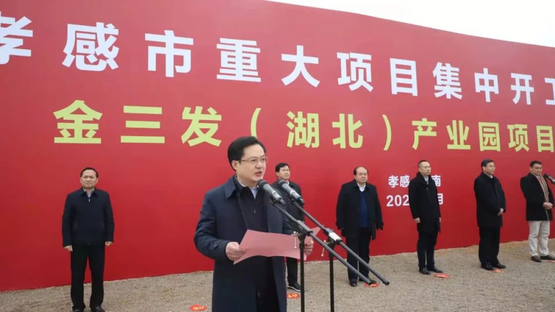2月27日上午,孝感市2021年第一季度重大项目集中开工暨金三发(湖北)产业园项目开工,此次开工项目共146个,总投资高达673亿元。孝感市委书记吴海涛宣布项目正式开工,市长熊征宇发表讲话,区委书记、区长夏齐勇主持开工仪式。