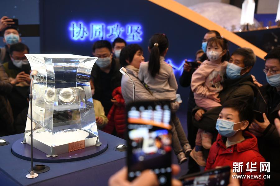 2月27日,人们在中国国家博物馆参观拍摄月球样品001号。新华社记者 金良快 摄