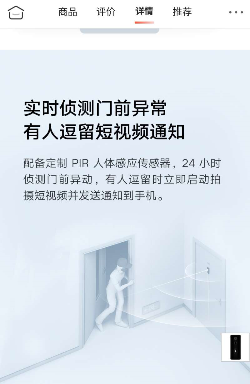 一家淘宝店的客服人员介绍,如果有人在家门口短暂停留,电子猫眼绑定的手机App能自动弹出提示,还能自动摄录画面。