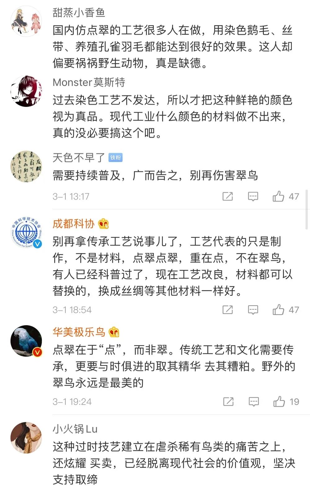 网友:传承的是点翠技艺,而不是捕杀翠鸟