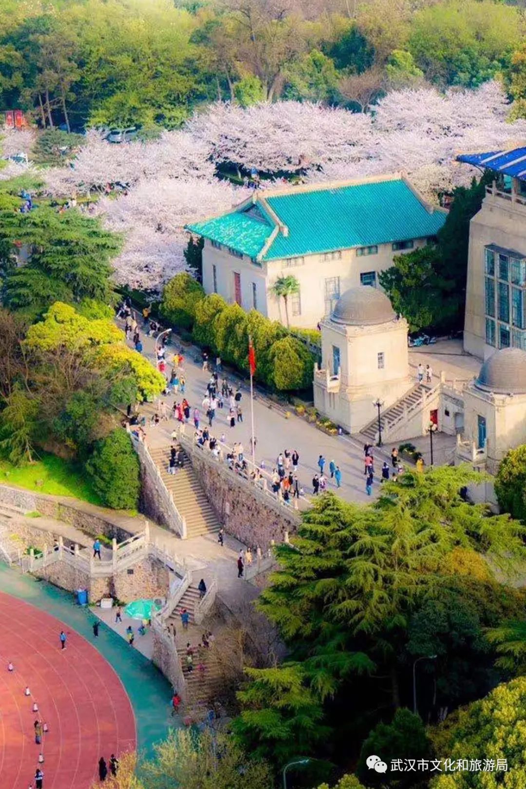 “看樱花,到武大”。每年三月,不少人的浪漫约定,就是到樱顶赏珞樱。武汉大学有“中国最美高校”之称,校园内有2000多株樱花,种类为山樱、垂枝大叶早樱、日本樱、红花高盆樱等,拍摄角度则以老斋舍、樱顶和万林顶视野最佳。