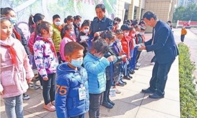 武汉晚报讯(记者郭丽霞 见习记者胡慧怡)春雨过后,青山区钢城四小校园内处处生机勃勃。3月3日下午,钢城四小五(3)班学生胡佳琪神气地挂着视保牌上岗,开始行使自己的职责。