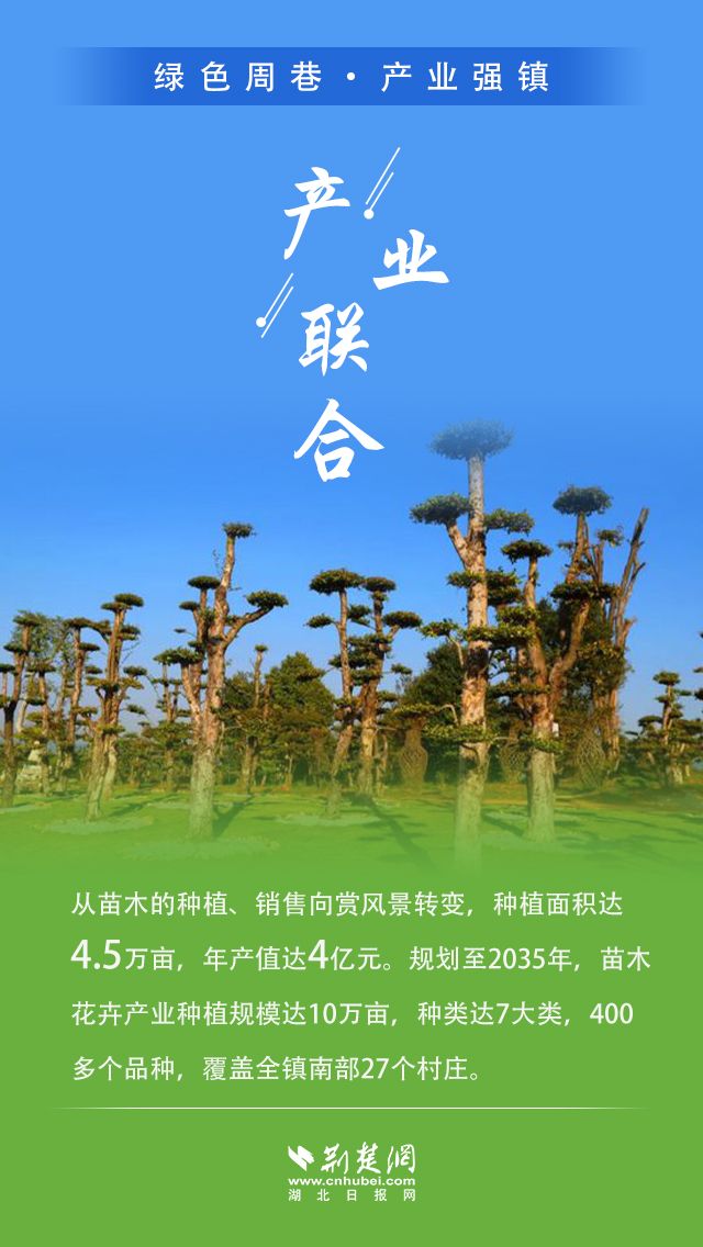 该镇按照孝昌县委、县政府着力打造华中地区景观苗木产业基地的安排部署,在进一步发展壮大三大主导产业的同时,大力推进农旅融合产业发展,扎实巩固脱贫攻坚成果,有效对接乡村振兴,为孝昌绿色崛起奠定良好基础。