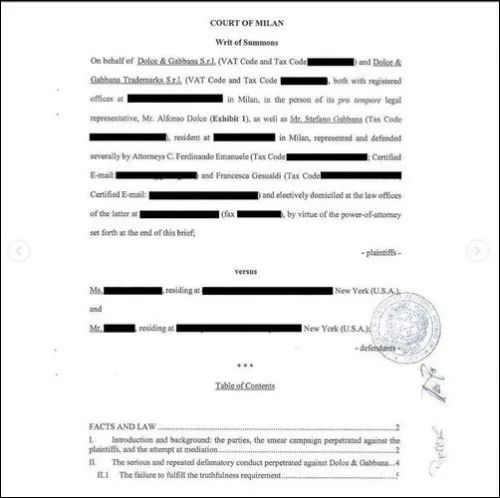 Diet Prada还晒出了来自意大利米兰法院的令状等文件。