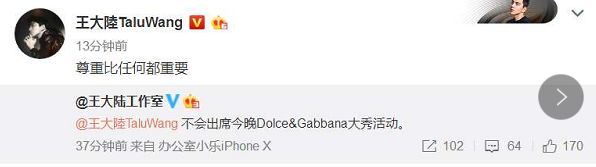 还有一些电商平台也纷纷下架了D&G产品、艺人放弃代言合作等等。