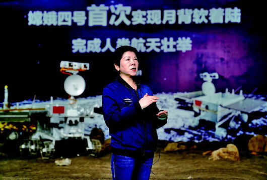 3月4日,张玉花在月貌实验室介绍探月工程。新华每日电讯记者 张建松摄