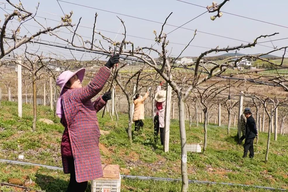 春季抚育管护直接关系到一年的挂果量与产量。在三水梨基地,工人们手持铁剪,穿梭在一棵棵梨树间,疏花、修枝,为果树丰产丰收做中前期准备。