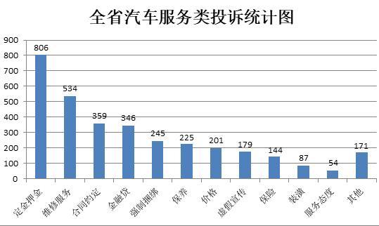 浙江省汽车服务类投诉统计图。 浙江省消保委供图
