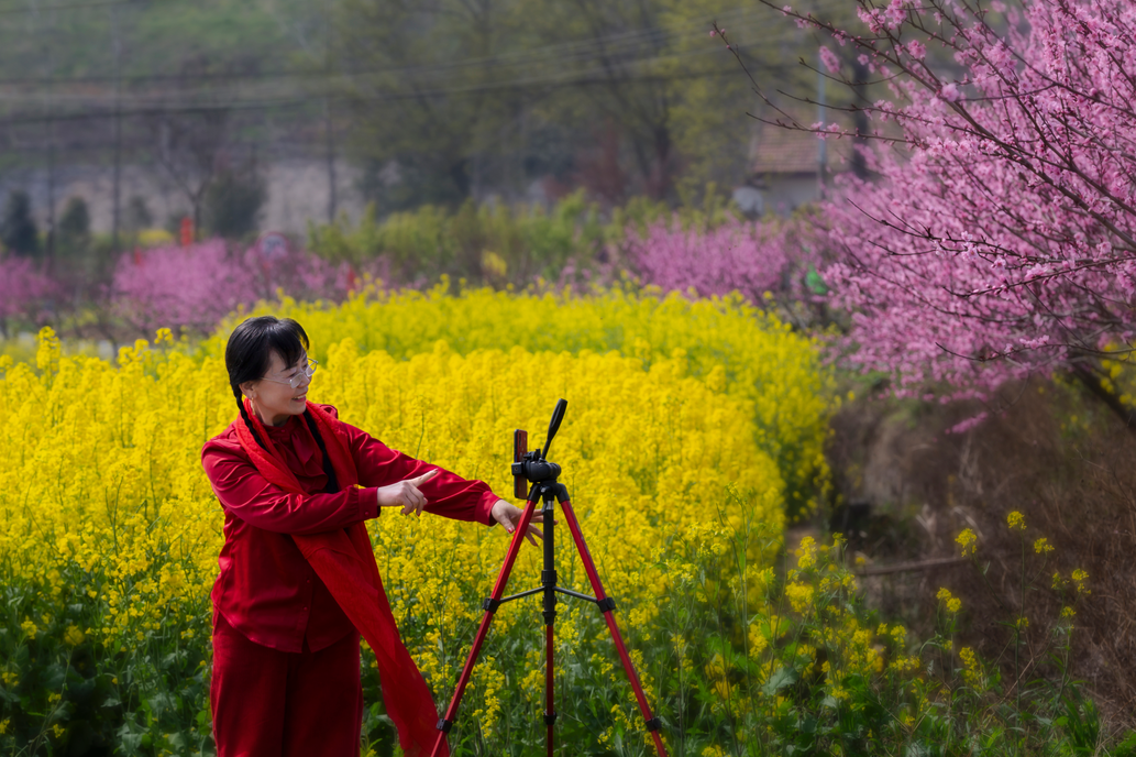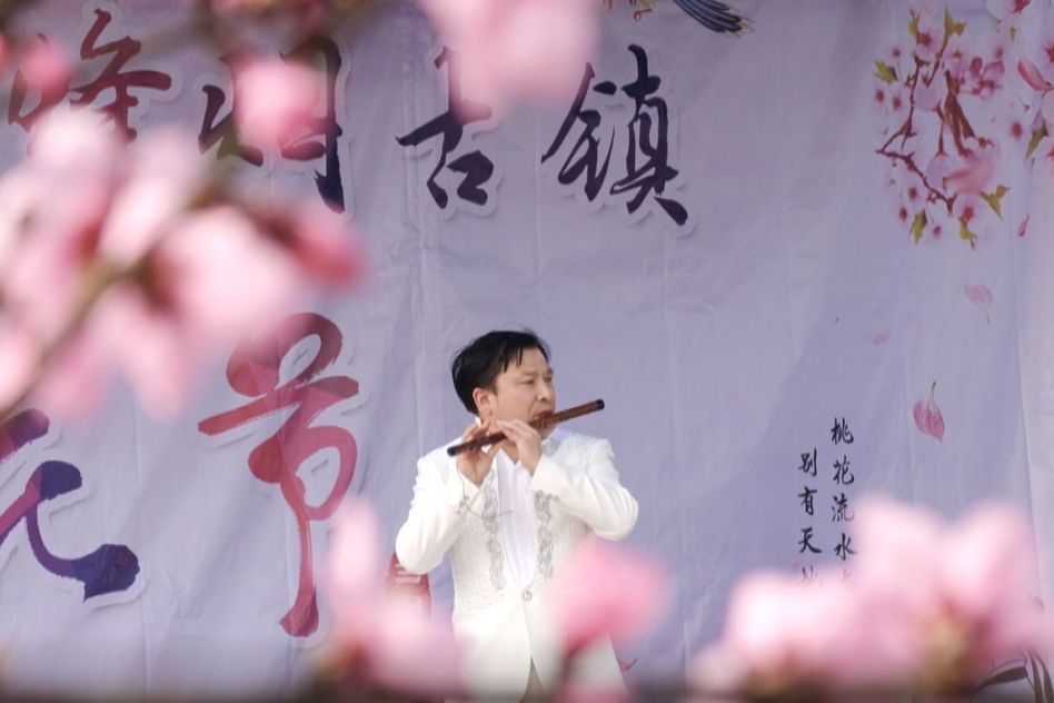 一曲纱巾舞《花开》,带领游客感受桃花纷飞的诗情画意。