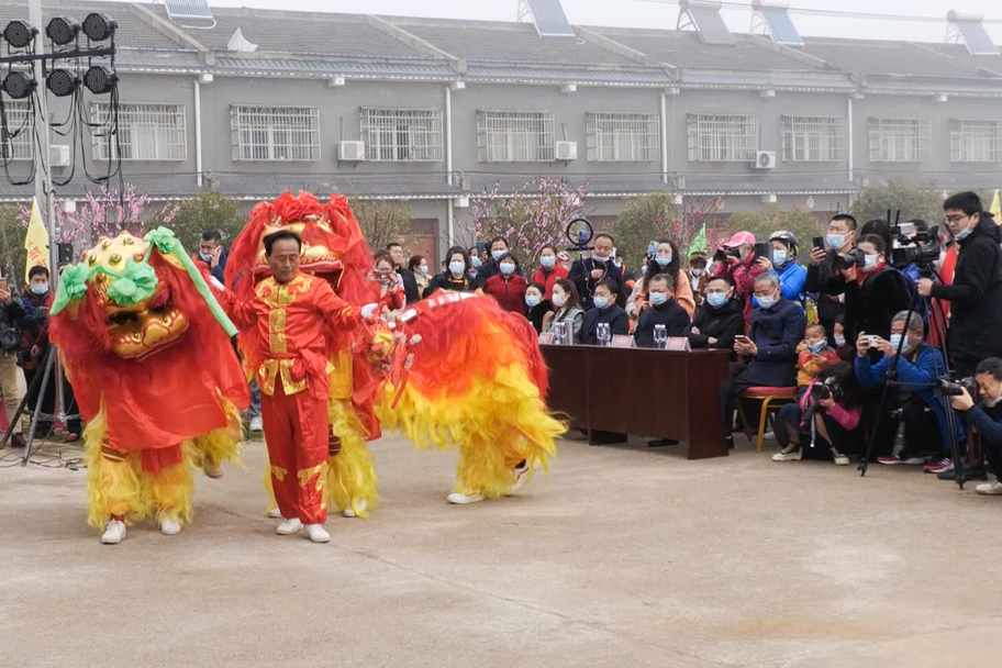 随着喧闹的锣鼓声,文艺演出在舞狮闹春中拉开了帷幕,热闹的氛围燃爆现场。
